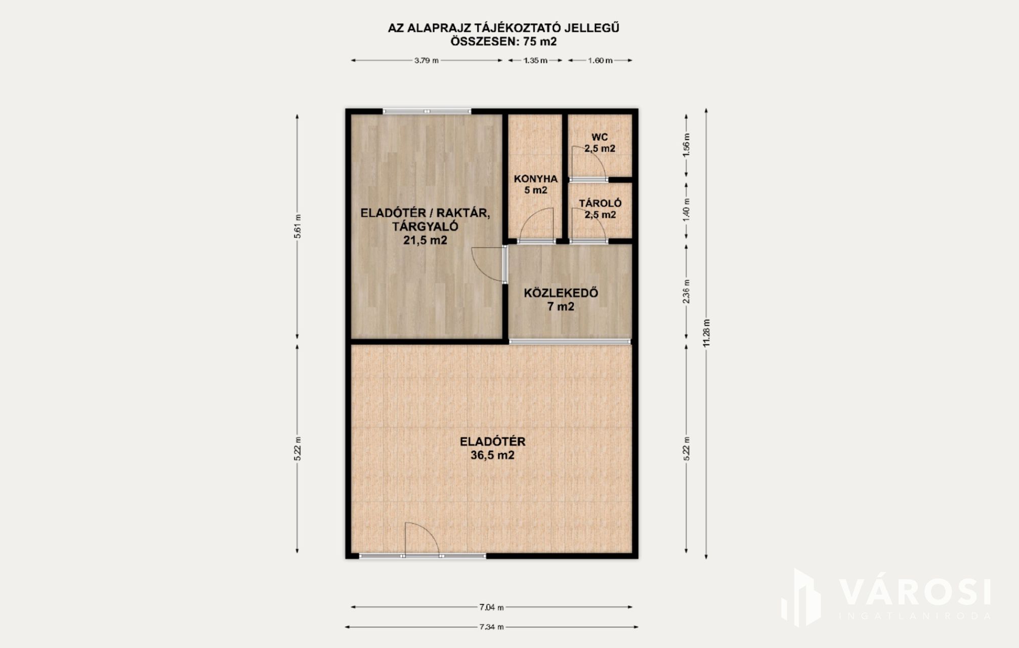 Eladótér / raktár / tárgyaló: 21,5 m2