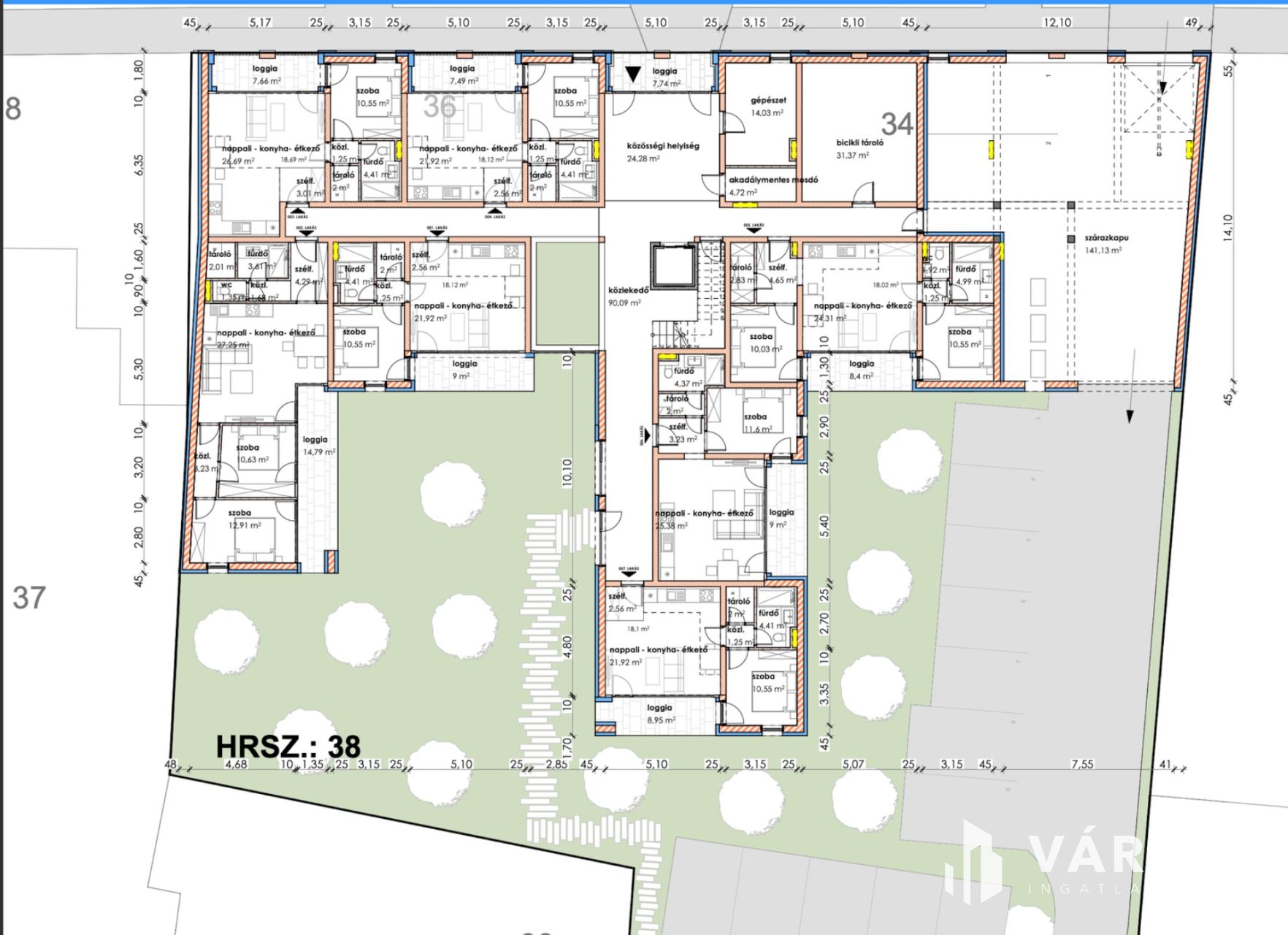 Makón, presztizs lokációval rendelkező - Makói fürdőtől 30 méterre - a Szent János téren - A Napfény Residenceben - , Eladó egy most induló, tégla építésű, ELSŐ EMELETI , 81,84 nm-es élettérrel rendelkező, amerikai konyha nappali plusz kettő szobás loggiás lakás (102.lakás), liftes házban.