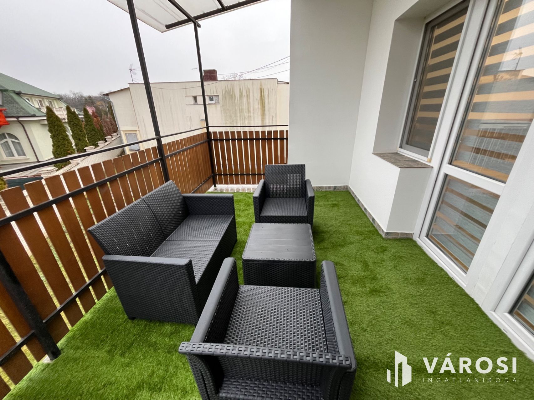 The apartment also includes a spacious terrace with artificial grass and outdoor furniture, where you can relax and enjoy the peaceful green surroundings. On-site parking in the courtyard is available for convenient parking. The proximity of the city center, the pedestrian street, and the Thermal Spa guarantees the true Hajdúszoboszló lifestyle.