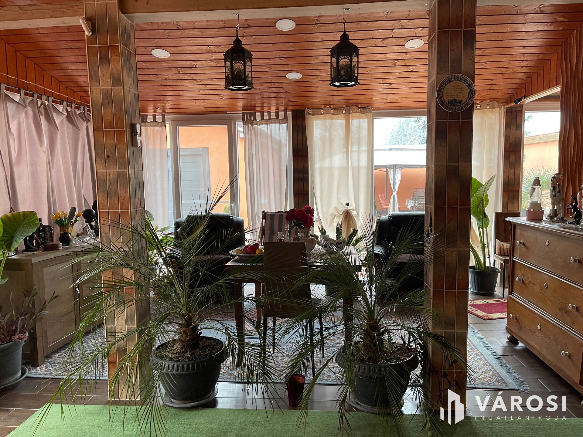 Egy ingatlan értékét leginkább a lokációja határozza meg. Békéscsabának egy ilyen kedvelt területe az Árpád fürdő környéke, ahol az eladásra kínált ingatlan található. Ami nagyon különlegessé teszi, az a mediterrán hangulatú udvara és hangulatos télikertje. Az udvar teljesen térkövezett, ami a lakóépületen kívül helyet ad egy külön álló garázsnak is. A házba a télikerten keresztül juthatunk be. Ez egy tágas 40 m2-es helyiség és kiváló helye lehet családi összejöveteleknek, hiszen innen nyílik egy kinti konyha egy nagy kamrával, valamint egy mosókonyha. Ez a rész egy nagy teljesítményű klímával fűthető és hűthető. A lakórész 162 m2, földszintjén helyezkedik el az amerikai konyhás nappali, fürdőszoba, tároló és egy nagy hálószoba. A nappali és a lenti háló falát látványos falburkolat borítja. Az emelet 3 szobából és egy kádas fürdőszobából áll további tárolókkal ellátva. Ezen a szinten is használható egy másik klímaberendezés. Az ablakok redőnyösek. Az ingatlan a mostani kellemes belső hangulatát másfél évvel ezelőtt kapta, ekkor végeztek rajta legutóbb némi átalakítást. Ezt megelőzően néhány évvel történ a teljes felújítása, korszerűsítése. Ezek alapján az ingatlan további jellemzői: