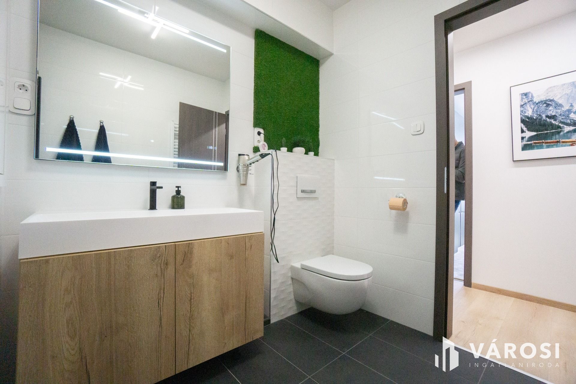 A lakásban felszerelésre került egy hűtő-fűtő klíma, ami biztosítja a mindig kellemes hőmérsékletet.