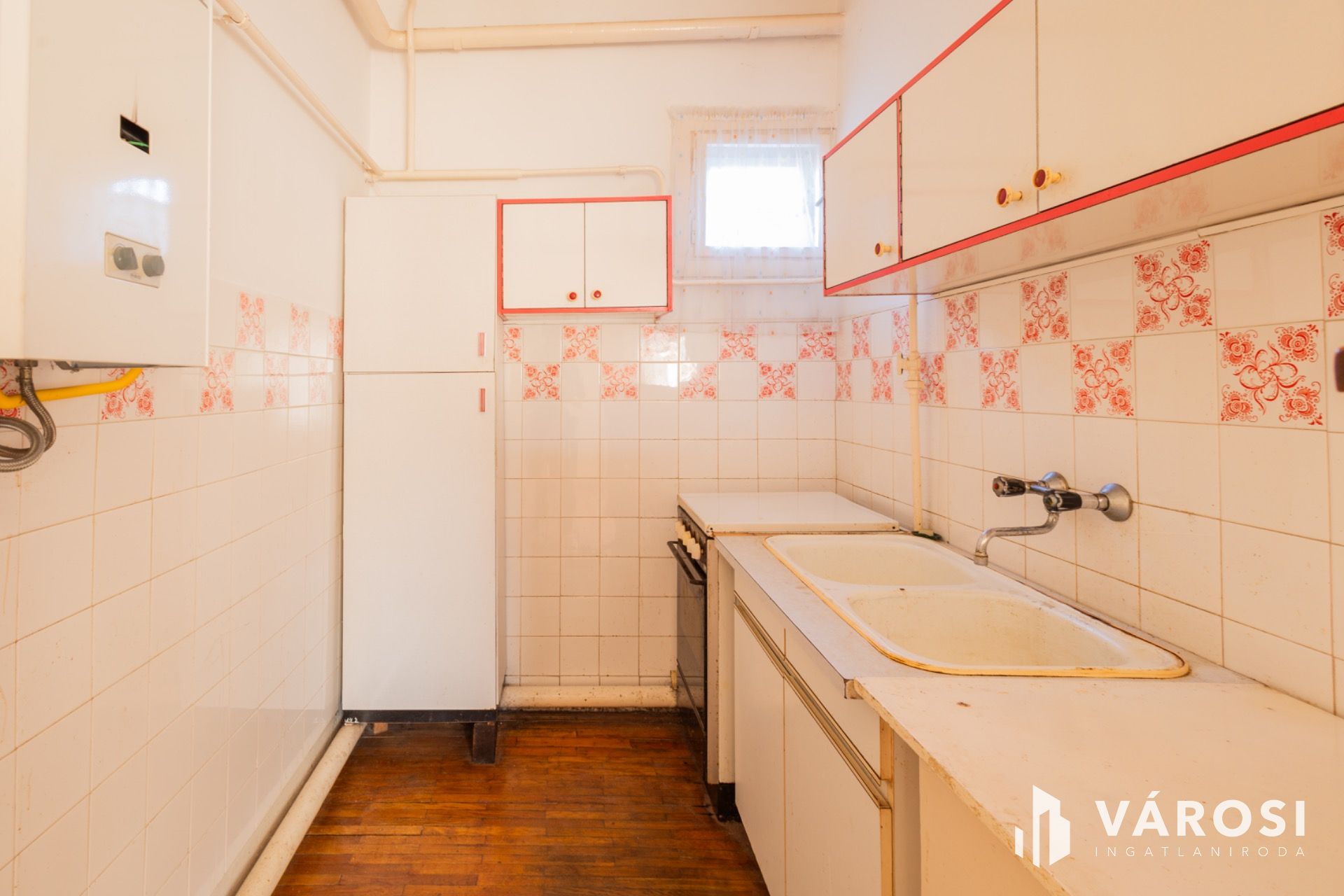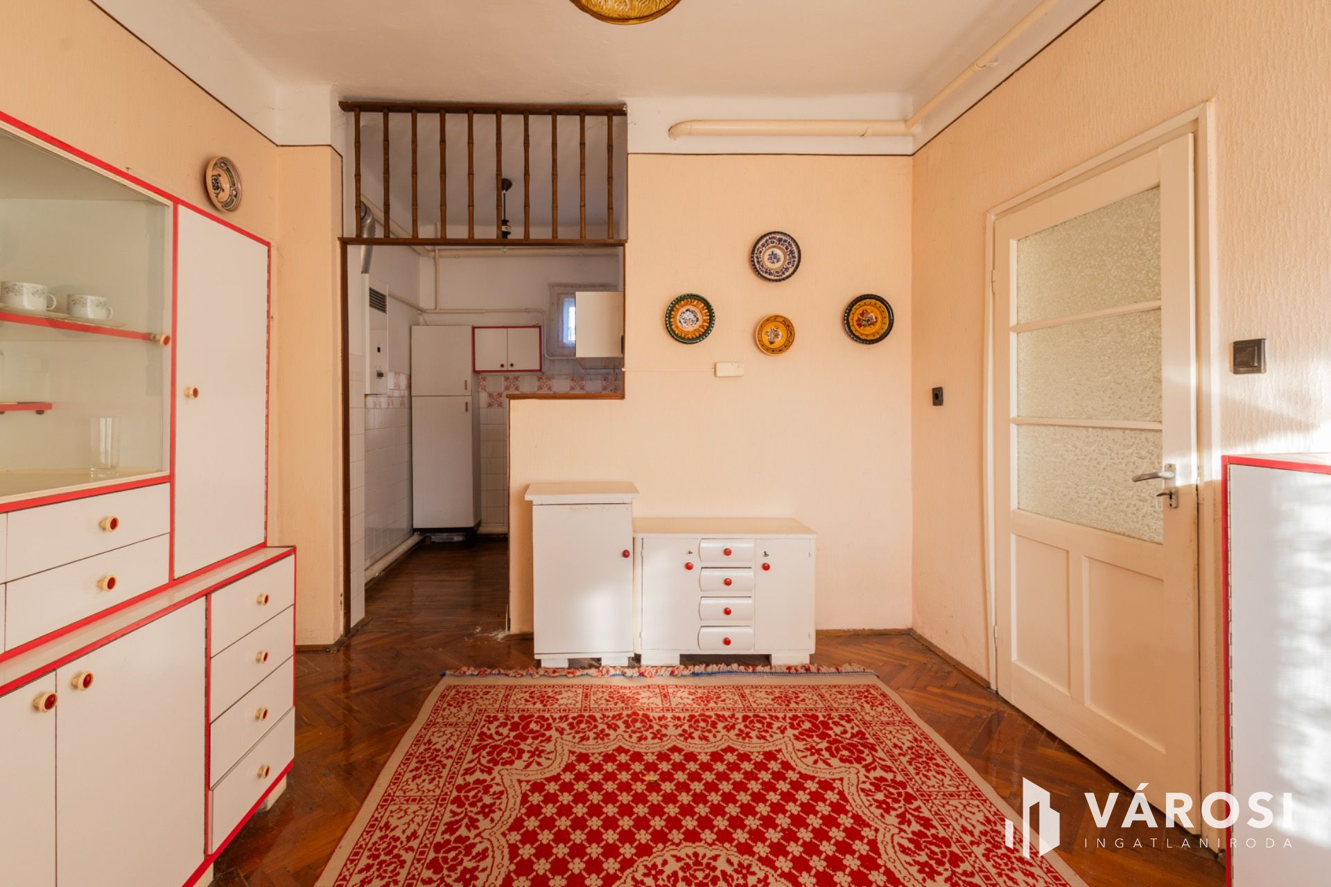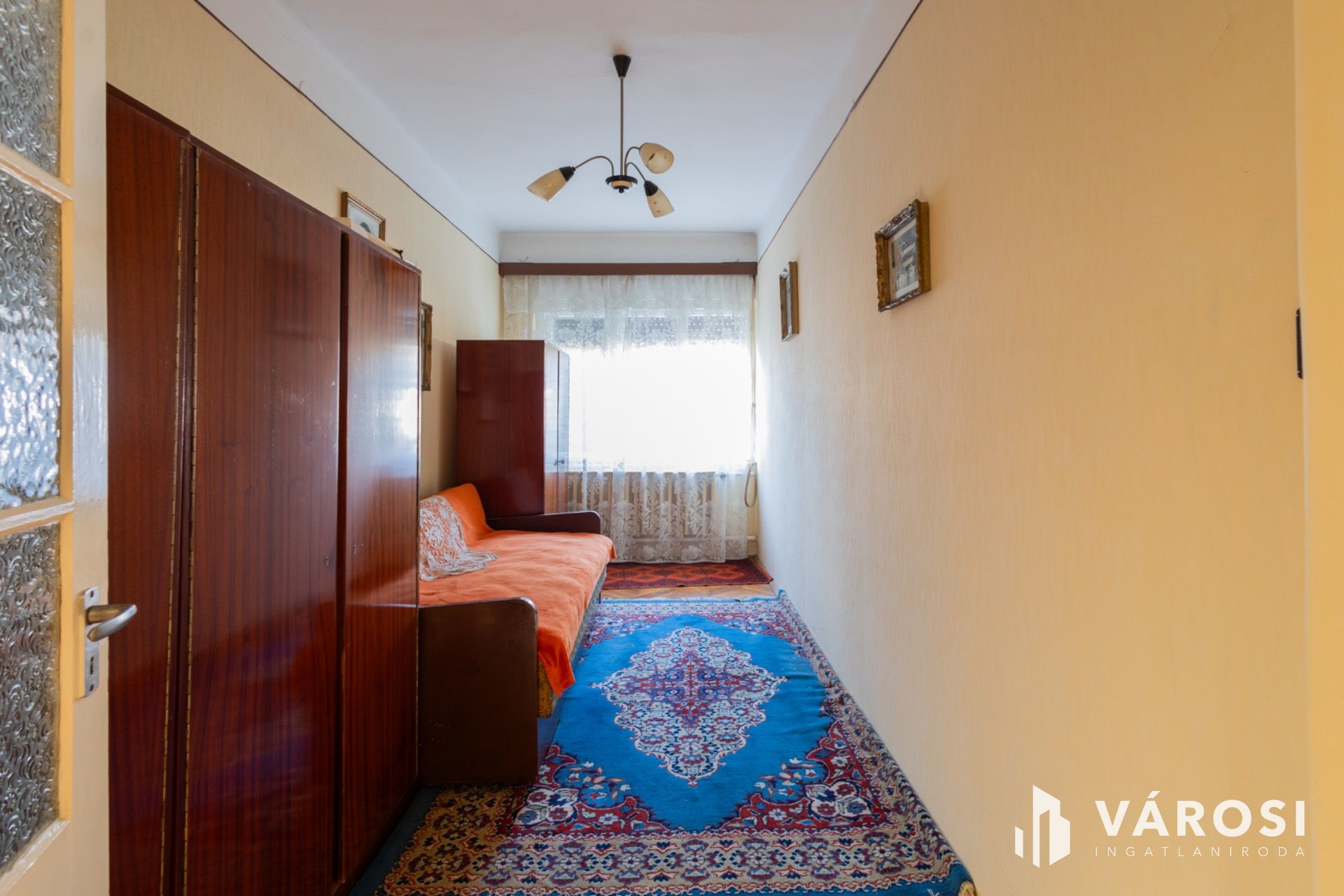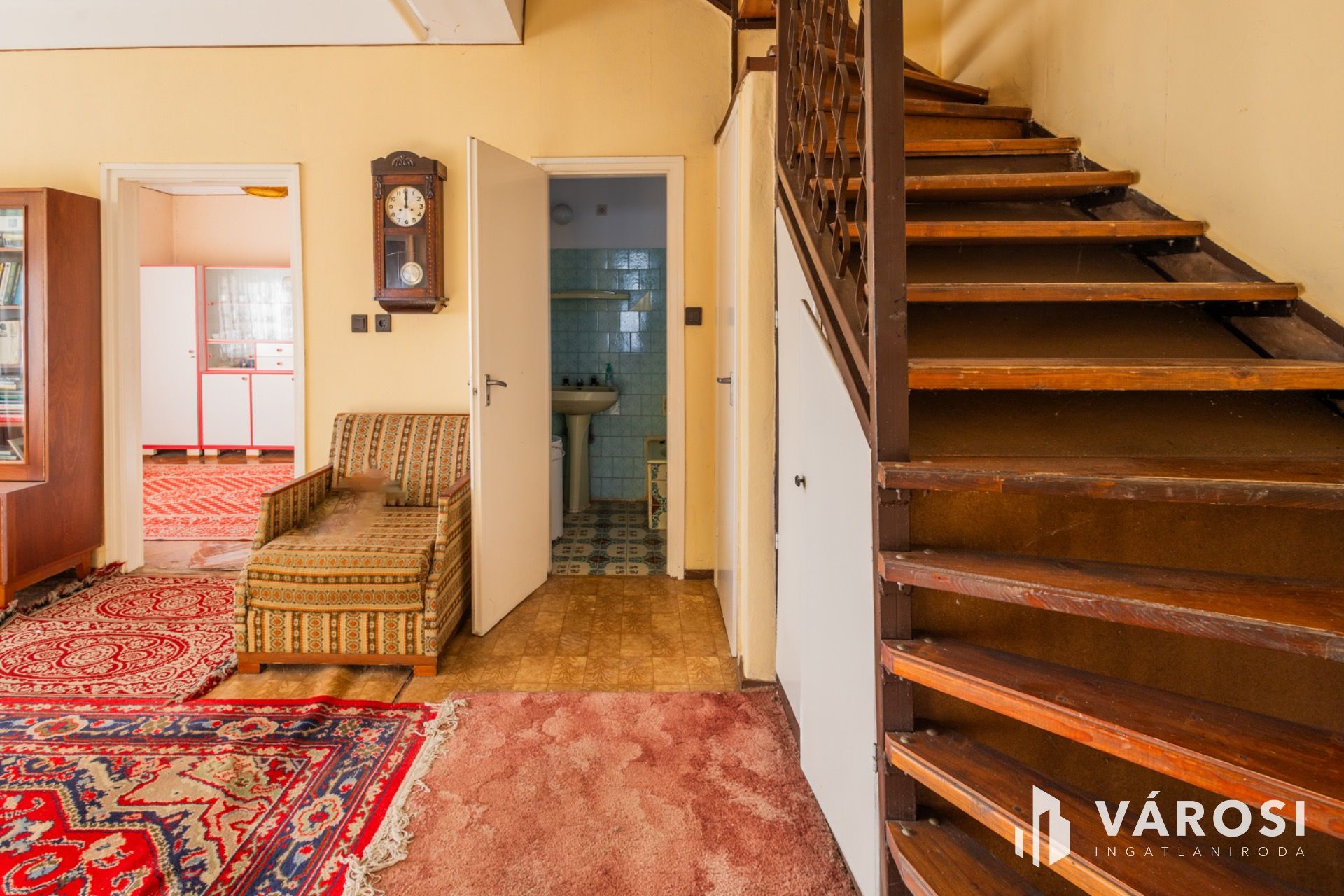 Ez a 150 m²-es lakótérrel rendelkező, átlagos állapotú ingatlan ideális választás mindazok számára, akik csendes környezetben szeretnének élni, ugyanakkor fontos számukra a jó közlekedés. A házban 4 tágas szoba, egy világos nappali, étkezős konyha, kamra valamint 2 fürdőszoba és két különálló mosdó is helyet kapott, így kényelmes otthont biztosít nagyobb családoknak is. Emellett a főépület hátsó szekciójában egy nagy alapterületű a kertből akár külön megközelíthető helyiség is található, mely alkalmas lakhatásra, de akár vállalkozás (körmös, fodrász, műhely stb) céljára is tökéletes.
