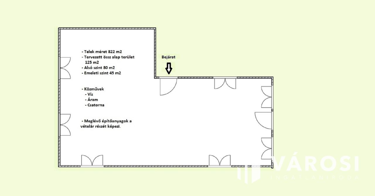Közművek: víz, villany, csatorna rendelkezésre áll