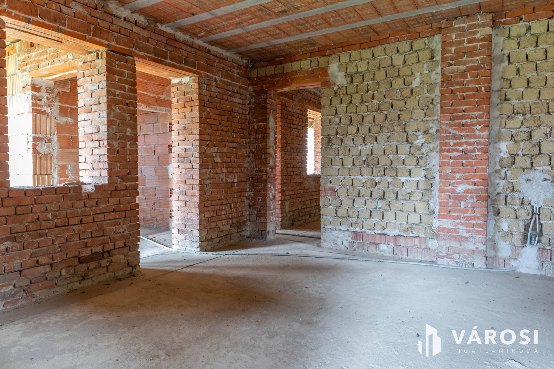 Eladásra kínálom Újiráz központi részén található 330 m2 alapterületű, + 238 m2 tetőtér beépítés lehetőségével bíró szerkezetkész ingatlant. Az épület hagyományőrző stílusban és az anyaghasználatot figyelembe véve ökoház ként kezdett épülni 2006-ban, több jól elválasztható helyiséggel. Falazat 50 cm vastag vályogtégla, a lábazat és a födém kis és nagyméretű hőszigetelő téglából lett kialakítva, mely mély beton alapon helyezkedik el. A közművek közül a víz bevezetésre került, a többi a telekhatáron megtalálható.
