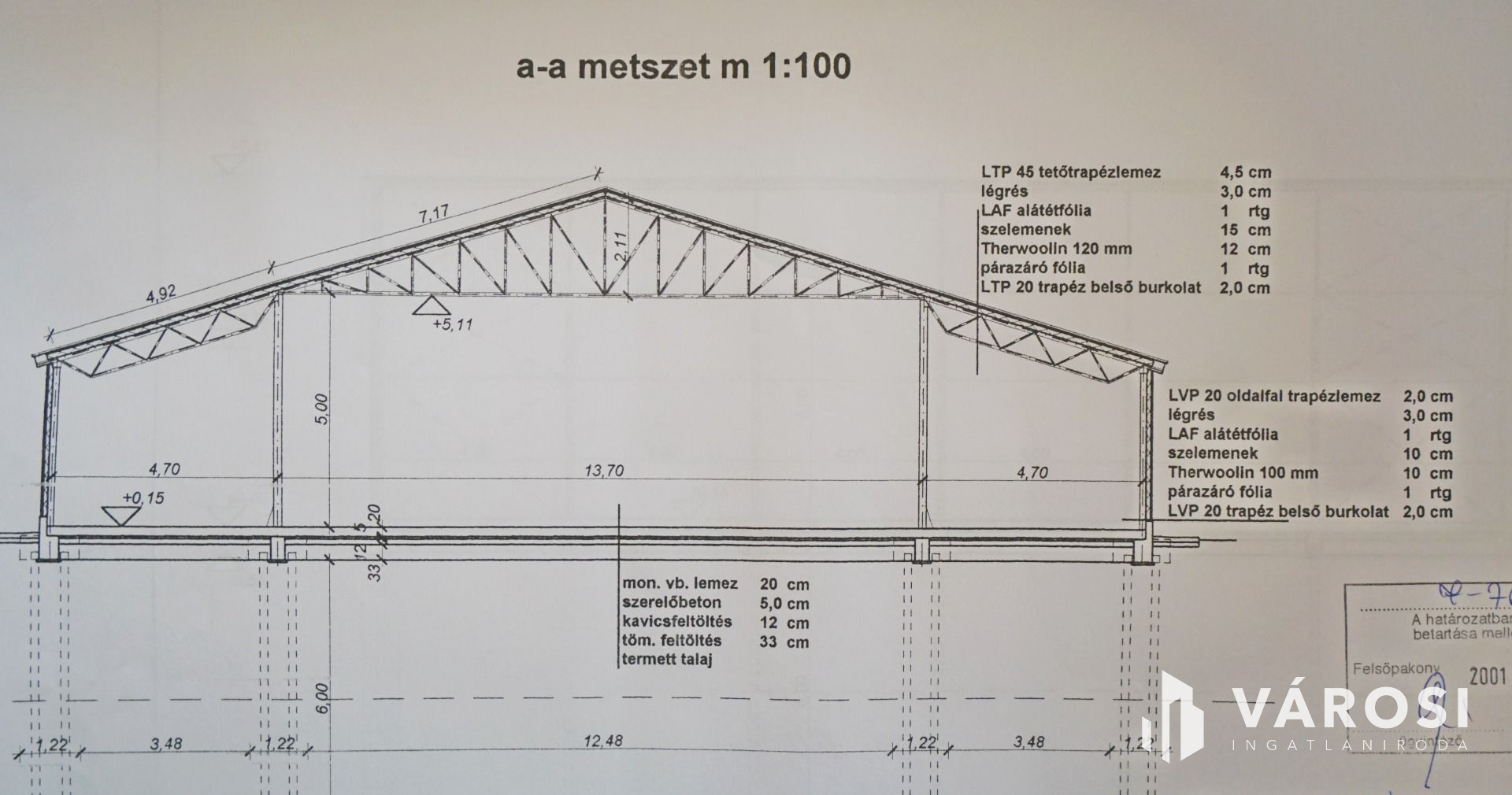 Külön álló 252 m2 beton alapú,lemez falú raktárral.